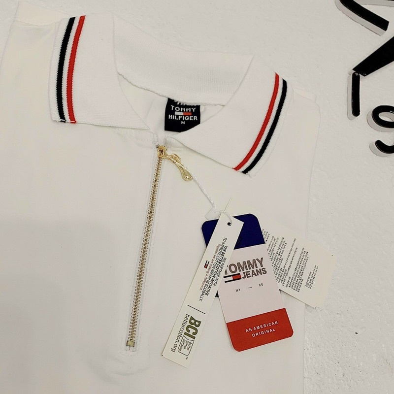Thời Trang Nữ > Áo > Áo polo || Áo polo trắng viền đỏ đen mác hiệu cộc tay