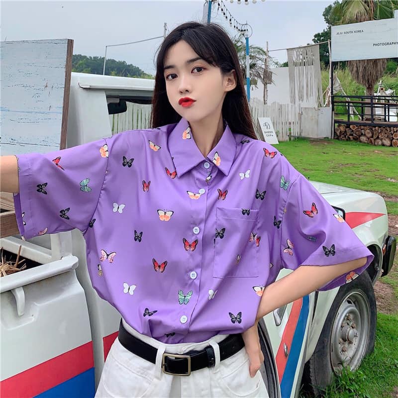 Kiểu dáng: sơ mi cổ bẻ, có cúc cài, in nhiệt công nghệ cao không bong tróc họa tiết bươm bướm, trước ngực có túi áo cực tiện. Sơ mi thì cực dễ ứng dụng rồi ạ, đi làm, đi học, đi chơi, nam hay nữ đều mặc cực ok nhé ạ ^^