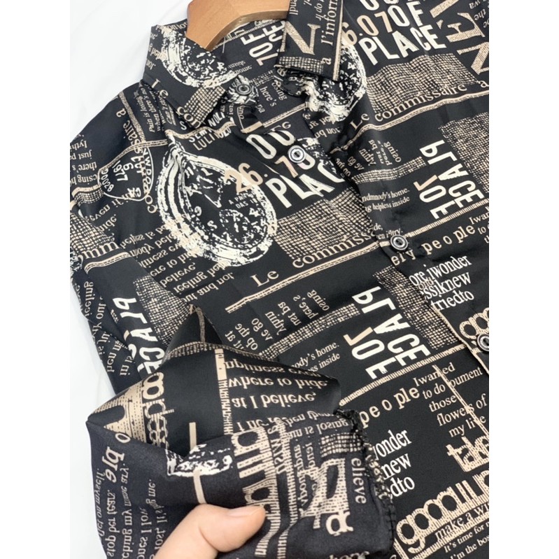 - Áo đen lụa bóng nhẹ có chữ