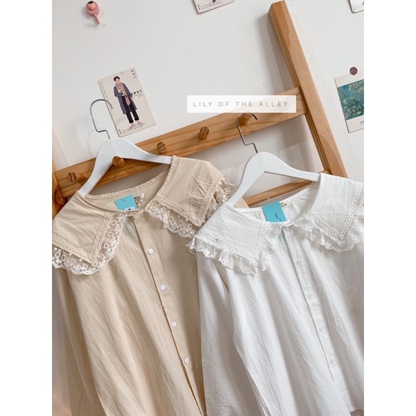 Thời Trang Nữ > Áo > Áo sơ mi || Áo sơ mi cổ nhọn viền ren