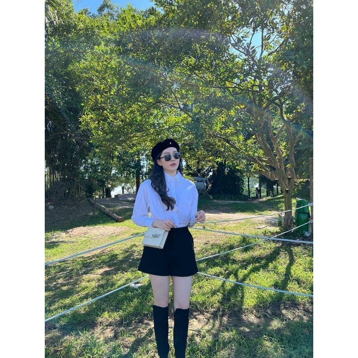 Chất thô mềm mặc thích, cúc trai cao cấp chuẩn hịn chuẩn ảnh, cổ sen xinh xinh da dáng tiểu thư đài các lắm luông á