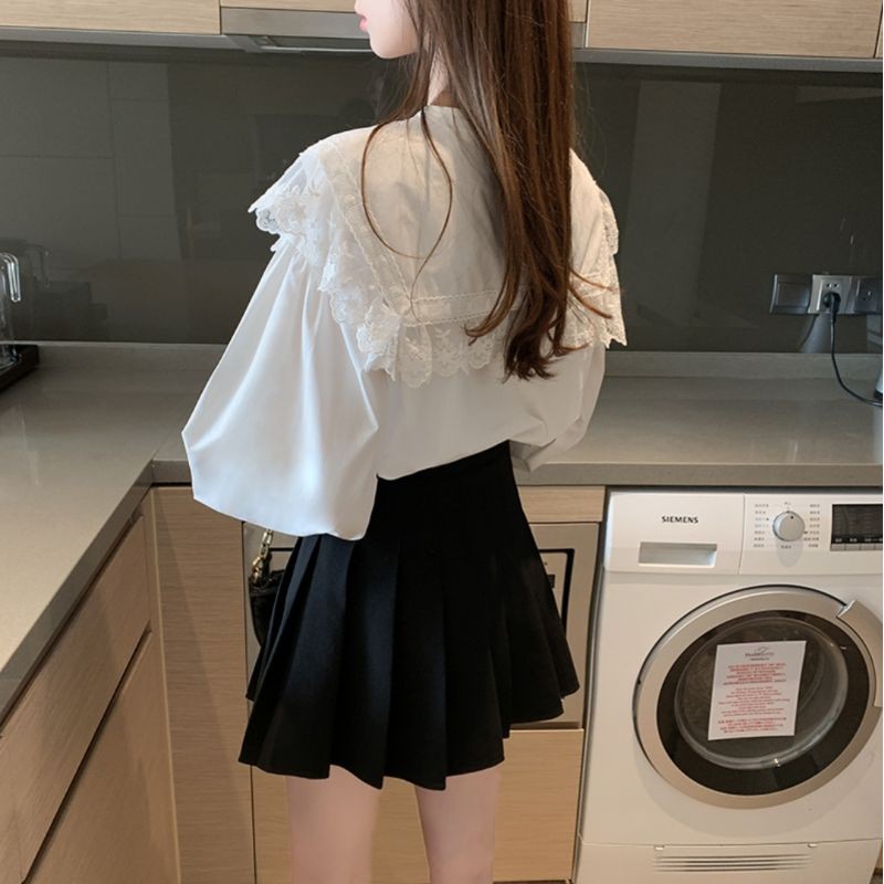 Thời Trang Nữ > Áo > Áo sơ mi || áo sơ mi cổ sen viền ren ulzzang ảnh thật