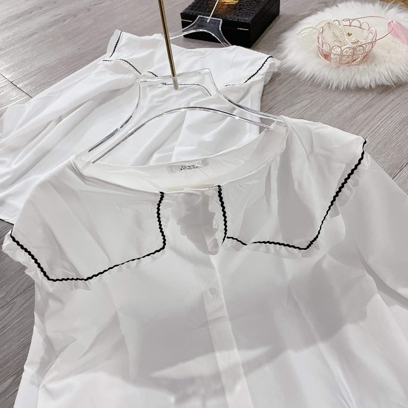 Thời Trang Nữ > Áo > Áo sơ mi || Áo sơ mi cổ viền đen bèo DH6