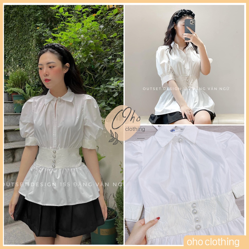 Giới thiệu Áo Sơ Mi Công Sở Nữ Ngắn Tay Đai Eo Chất Lụa Thô Thoáng Mát, Sơ Mi Kiểu Hàn Quốc Đi Làm OHO CLOTHING