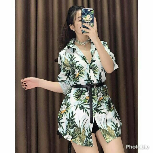 Giới thiệu Áo sơ mi dáng dài hoa lá kèm tặng belt freeship