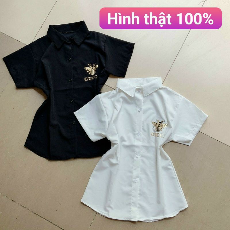 Thời Trang Nữ > Áo > Áo sơ mi || Áo sơ mi đính con ong GC chuẩn body phôm đẹp xuất sắc