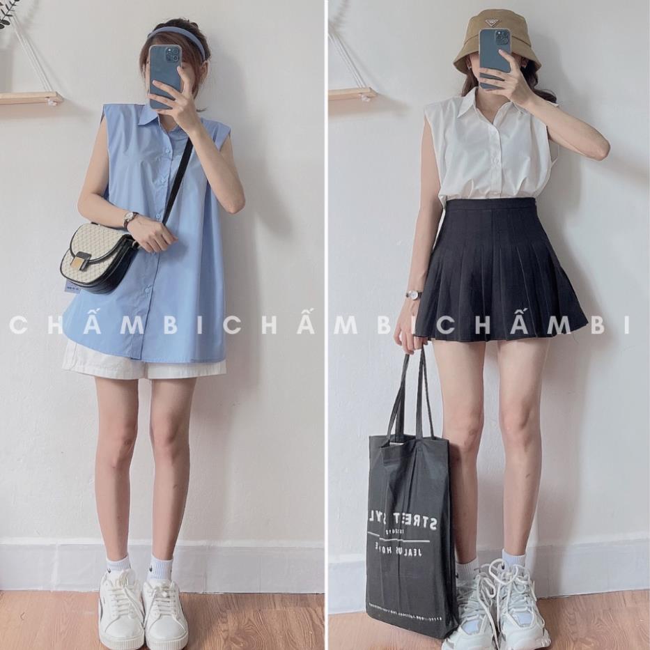 Áo sơ mi form rộng A,234, Áo sơ mi khoét nách phong cách ulzzang Hàn Quốc