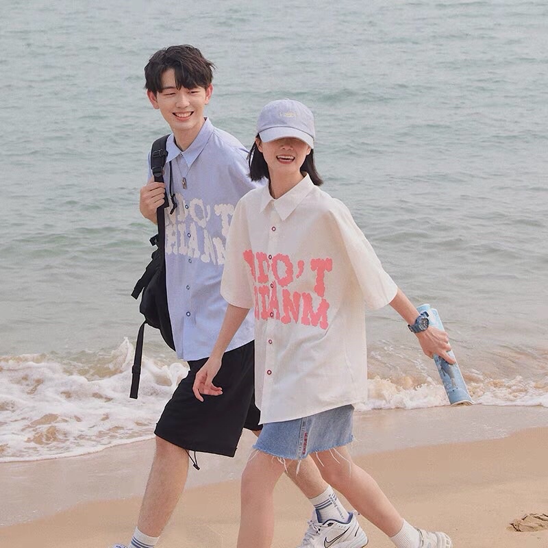 Thời Trang Nữ > Áo > Áo sơ mi || Áo sơ mi GỜ -UU xanh trắng chữ in