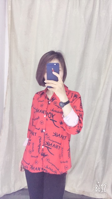 Thời Trang Nữ > Áo > Áo sơ mi || Áo sơ mi họa tiết đỏ⚡️FREESHIP EXTRA⚡️