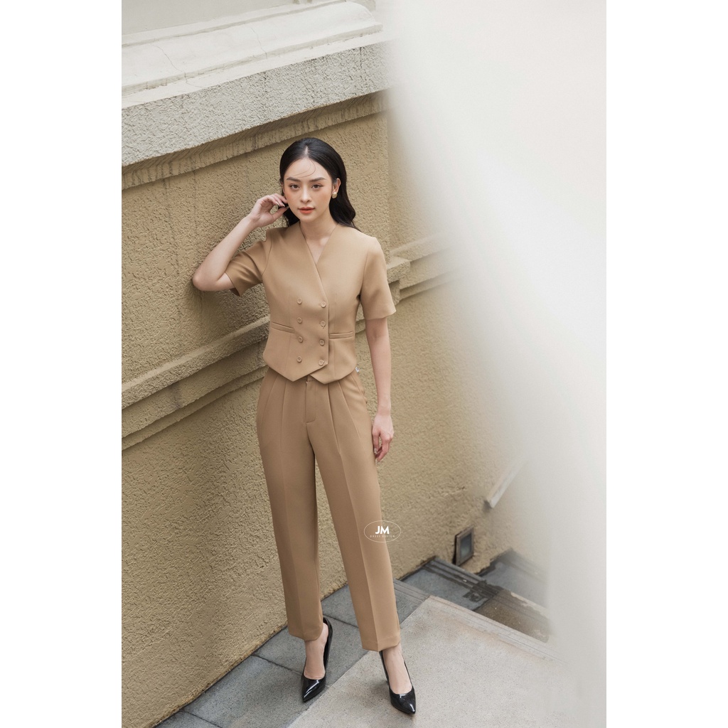 Thời Trang Nữ > Áo > Khác || Áo Sơ Mi JM Cổ V Đan Hai Hàng Cúc 2T10.2201KT