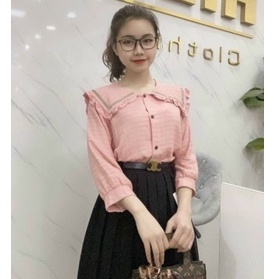 Thời Trang Nữ > Áo > Áo sơ mi || Áo sơ mi kẻ cổ viền bánh bèo chất thô mềm