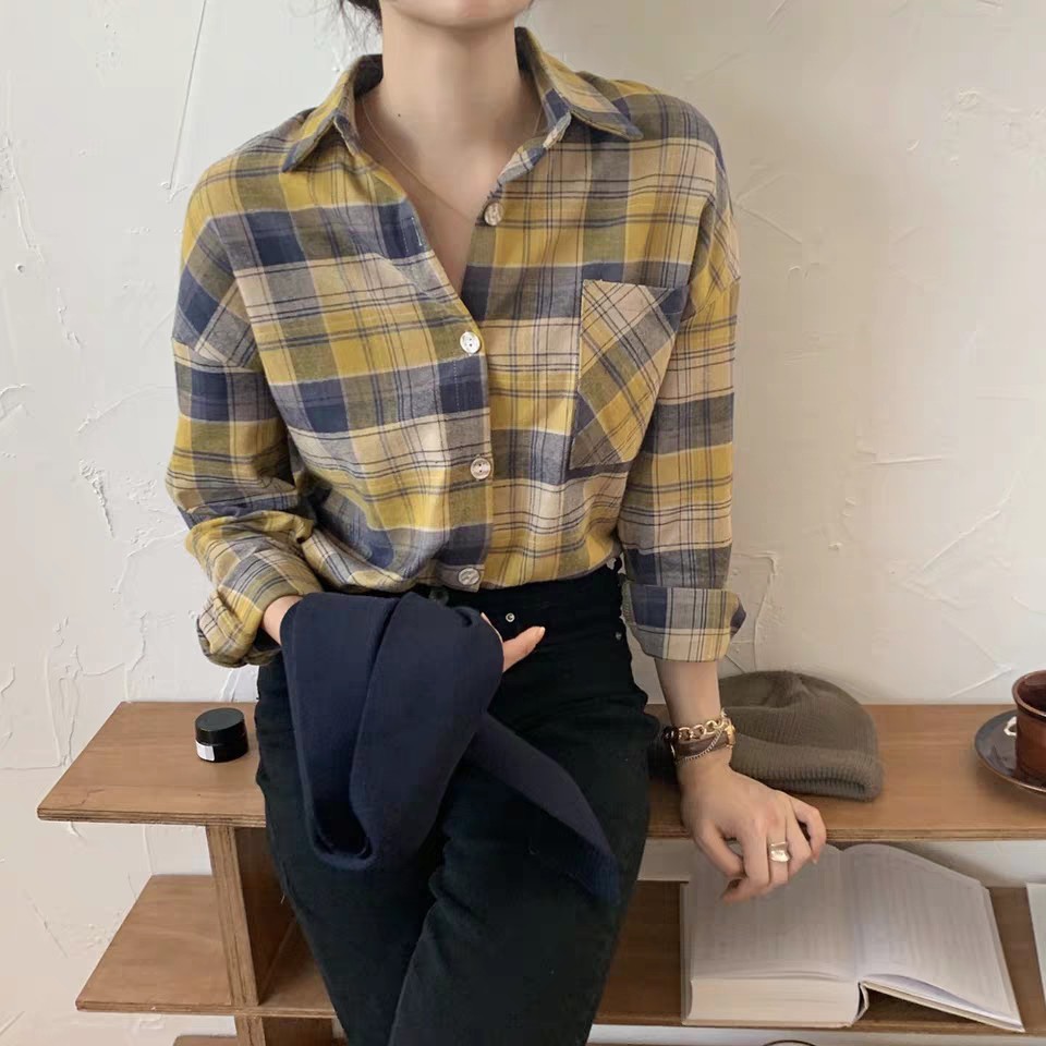 Thời Trang Nữ > Áo > Áo sơ mi || ÁO SƠ MI KẺ NỮ DÀI TAY DÁNG RỘNG