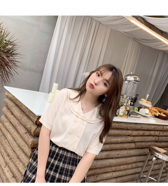 sản phẩm: Áo vải màu kem cổ sen tầng 2 hàng nút size lớn