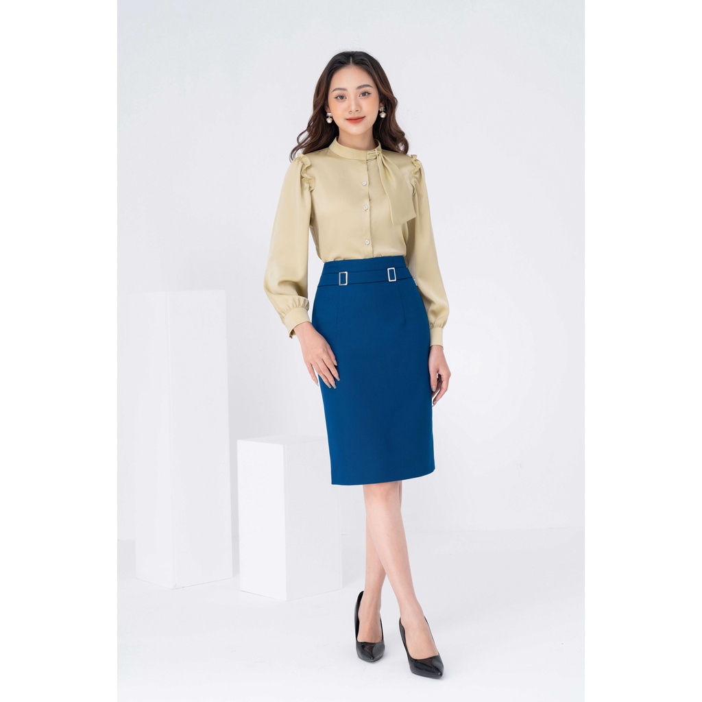Thời Trang Nữ > Áo > Áo sơ mi || Áo sơ mi lụa be cổ tàu phối nơ Lamia Design SM028 SM027