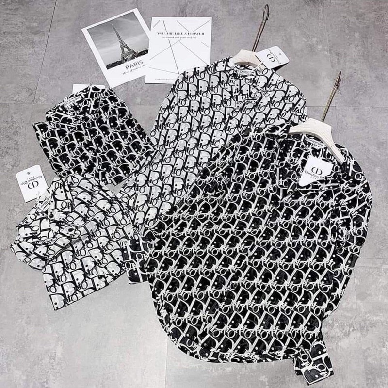 Áo sơ mi lụa hoạ tiết chữ D ior sang chảnh lụa tơ mềm mát cao cấp form rộng