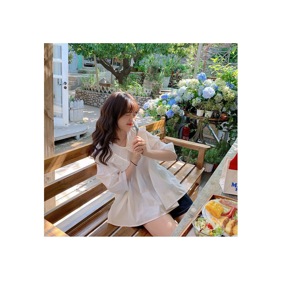 - Sản phẩm: Áo sơ mi nữ baby cổ bèo xanh/trắng ulzzang - Made by Fiin