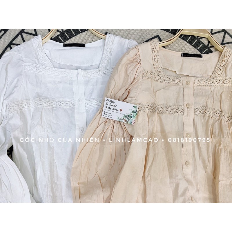 Áo Sơ Mi Nữ Cổ Vuông Viền Ren Tay Bồng (ẢNH THẬT+VIDEO)