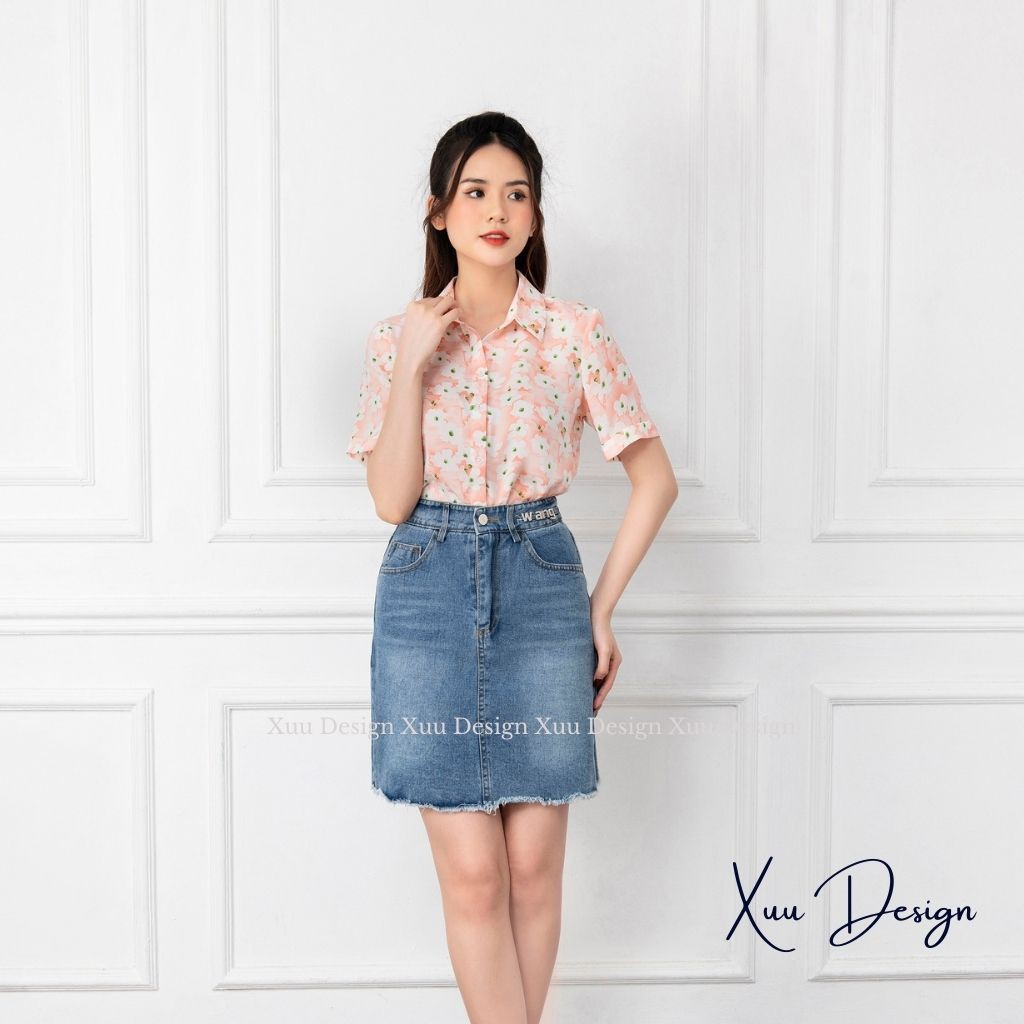 Giới thiệu Áo sơ mi nữ cộc tay họa tiết Xuu Design, Sơ mi kiểu thiết kế hoa cúc trẻ trung chất vải mềm mát lên dáng đẹp - SK10