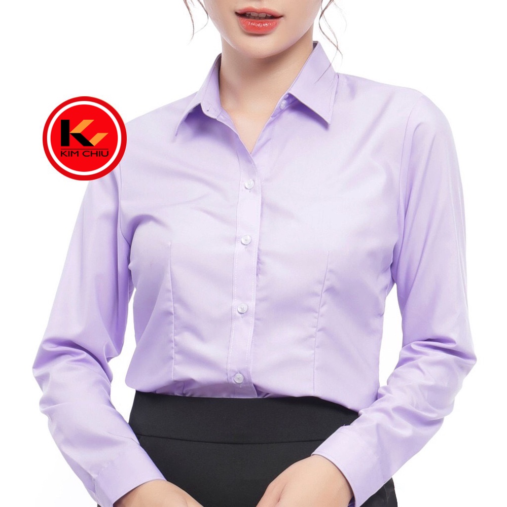 Giới thiệu Áo Sơ Mi Nữ Công Cở Cao Cấp Kim Chiu, Màu Tím Tay Dài Vải Kate Ý Đẹp Ít Nhăn Giãn Nhẹ, ĐỔI TRẢ THOẢI MÁI. SMTD01