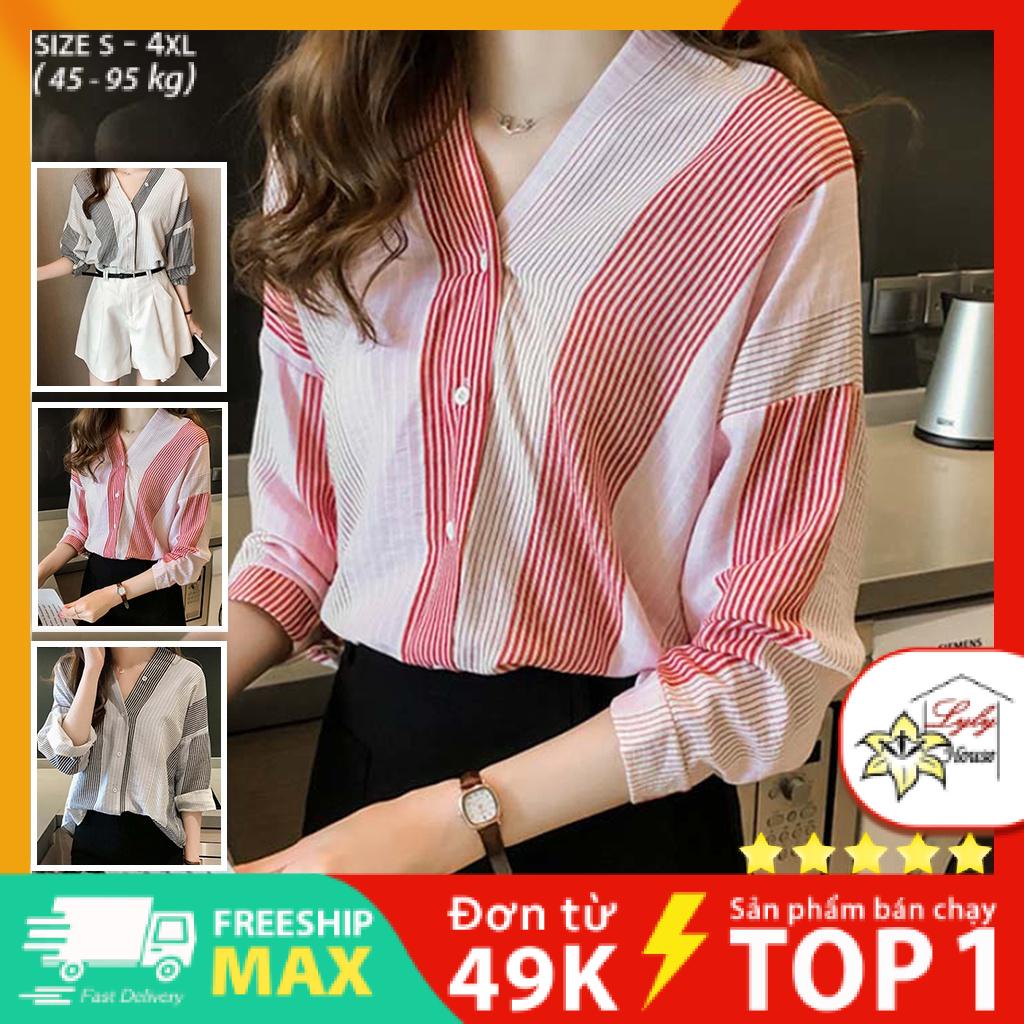Giới thiệu Áo sơ mi nữ công sở đẹp tay dài form rộng họa tiết sọc có size 45 - 95kg