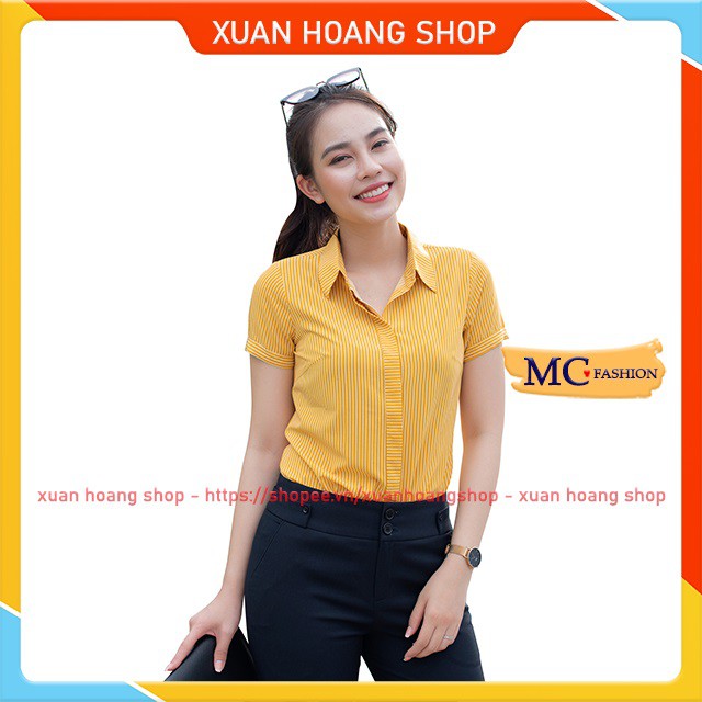 Giới thiệu Áo Sơ Mi Nữ Công Sở, Kiểu Tay Ngắn Cộc, Kẻ Sọc Đẹp Mc Fashion Hồng Trắng, Xanh Tím Than Đỏ, Size Đủ, Chất Mát A631