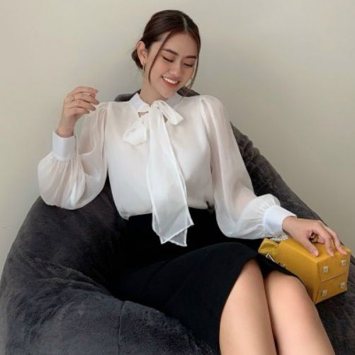 Thời Trang Nữ > Áo > Áo sơ mi || Áo sơ mi nữ cột nơ xinh xắn