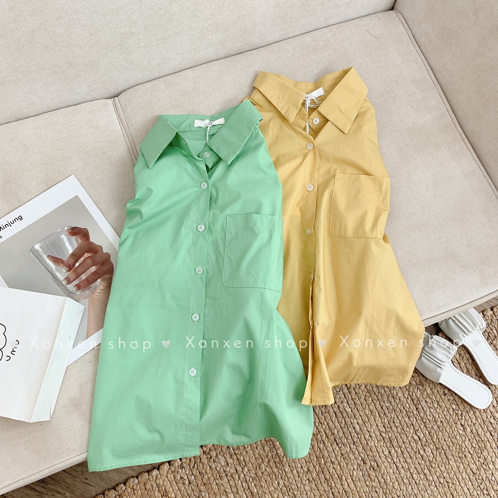 Áo sơ mi nữ đẹp sơ mi nữ công sở túi bên dễ thương XONXEN SHOP freesize mã A073