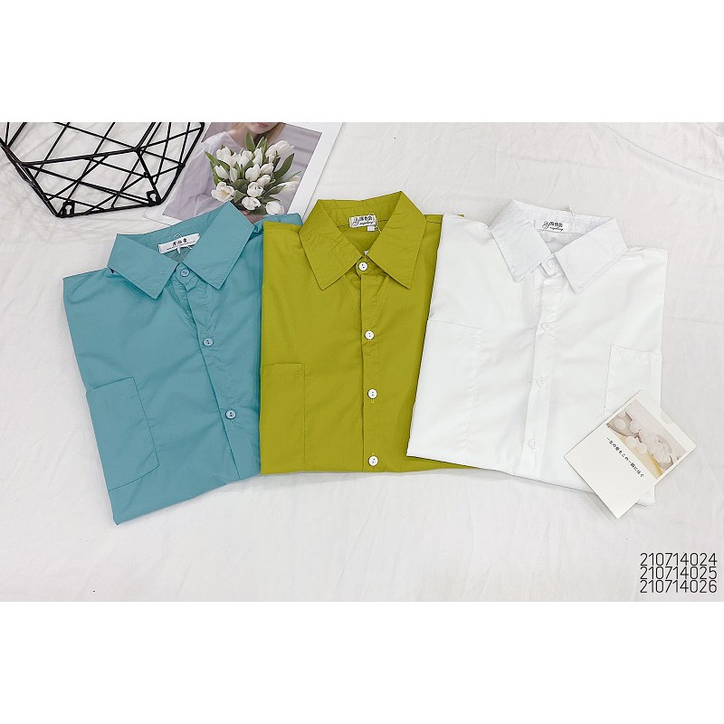 -Mã: Áo sơ mi nữ FM Style thiết kế cổ bẻ tay ngắn họa tiết trơn chuẩn form 210714028