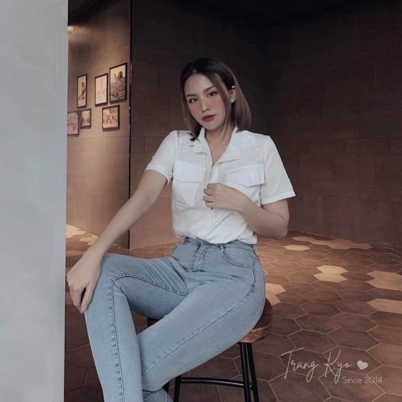 Mẫu quần jean ống loe vẫn chưa bao giờ hết hot cả, vừa tôn lên đôi chân dài lại “hack” dáng cực chuẩn. Nếu nàng thấy kết hợp áo sơ mi nữ tay ngắn cùng quần jean và quần âu thông thường đã nhàm chán thì quần ống loe sẽ là điểm nhấn cho set đồ với áo sơ mi thêm thời trang hơn