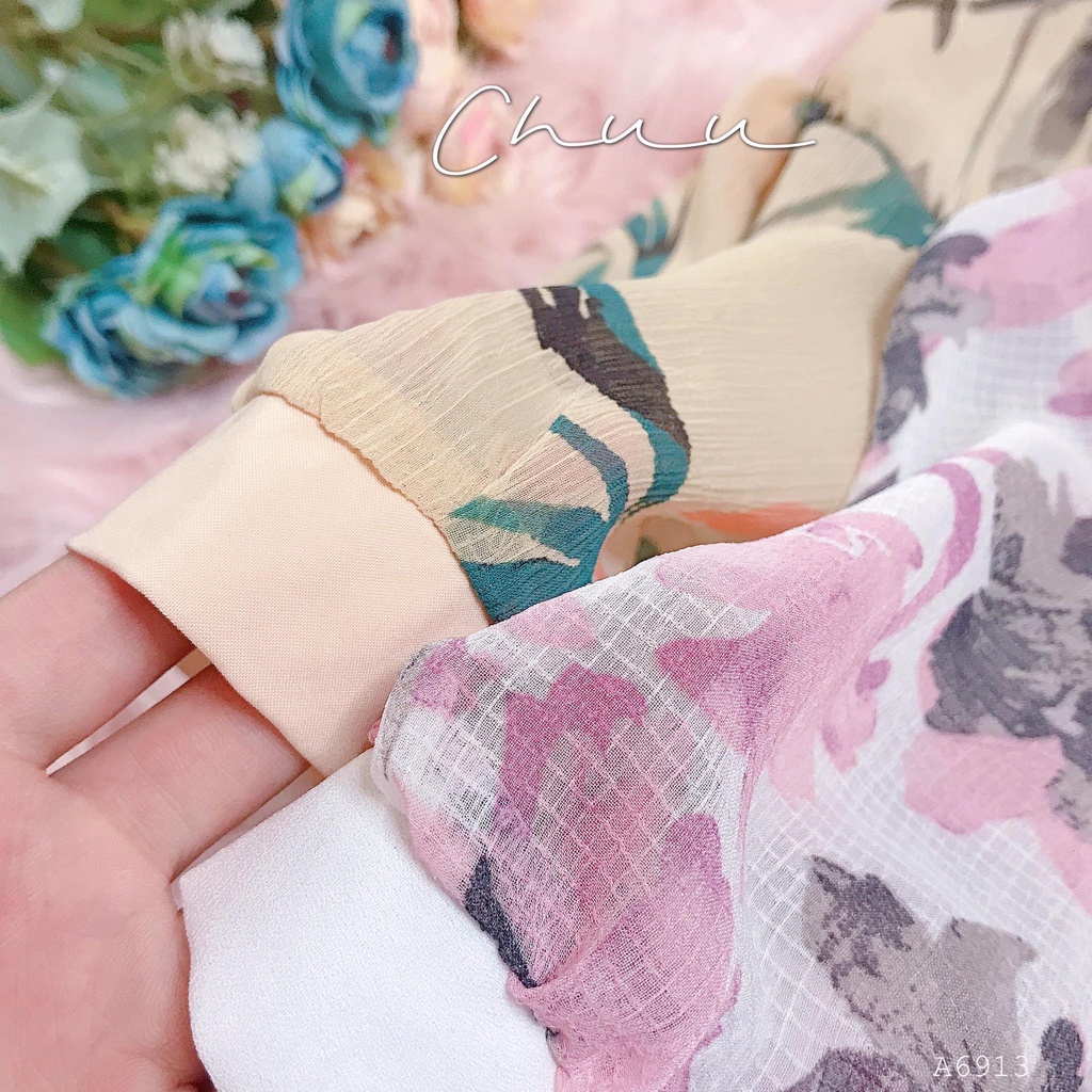 Giới thiệu Áo sơ mi nữ họa tiết hoa lá tay ngắn CHUU A6913