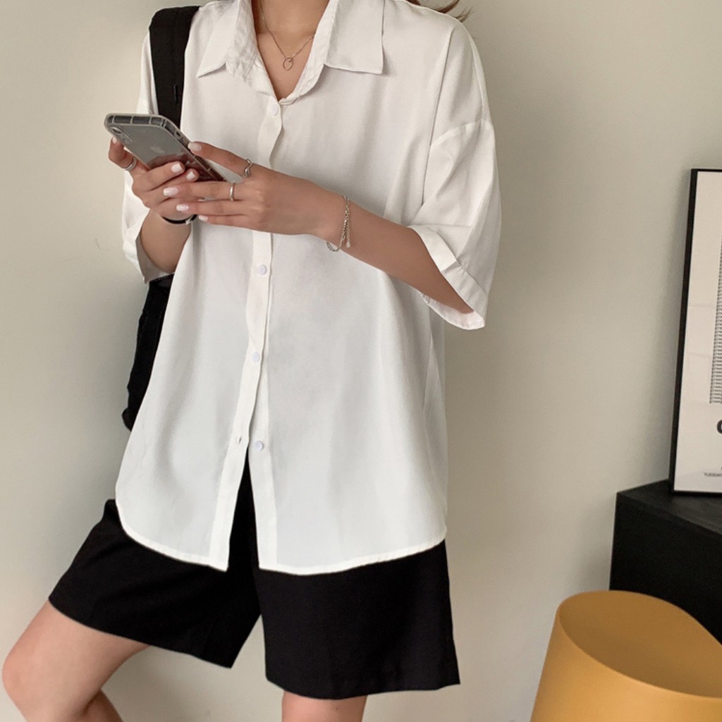 Giới thiệu Áo sơ mi nữ kiểu công sở đẹp form rộng tay ngắn T18 STORE SM04