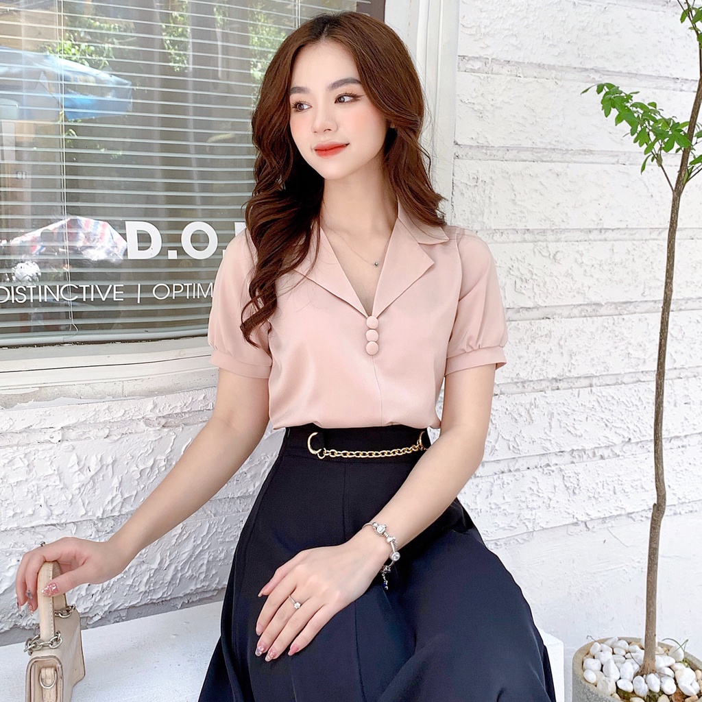 Giới thiệu Áo sơ mi nữ lụa mềm mát cổ vest cúc bọc 3 màu trơn công sở A917 HILA