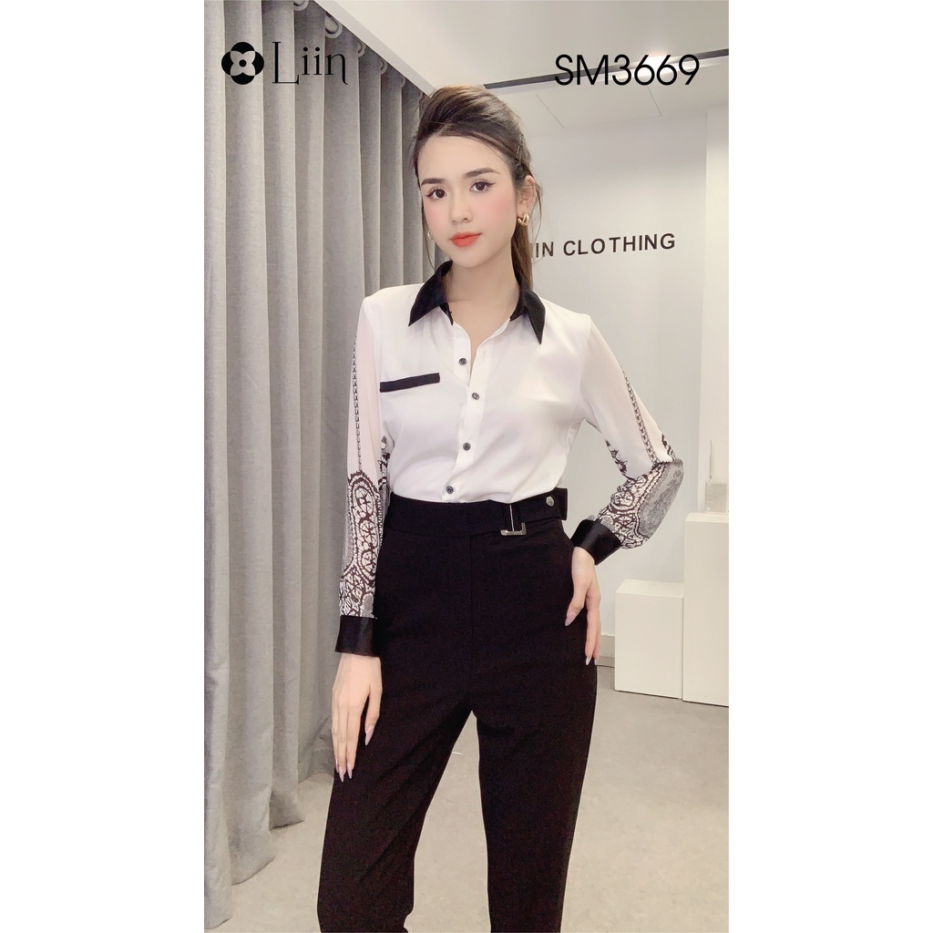 Giới thiệu Áo sơ mi nữ màu Trắng thiết kế dài Tay Họa Tiết form công sở thanh lịch Liin Clothing SM3669