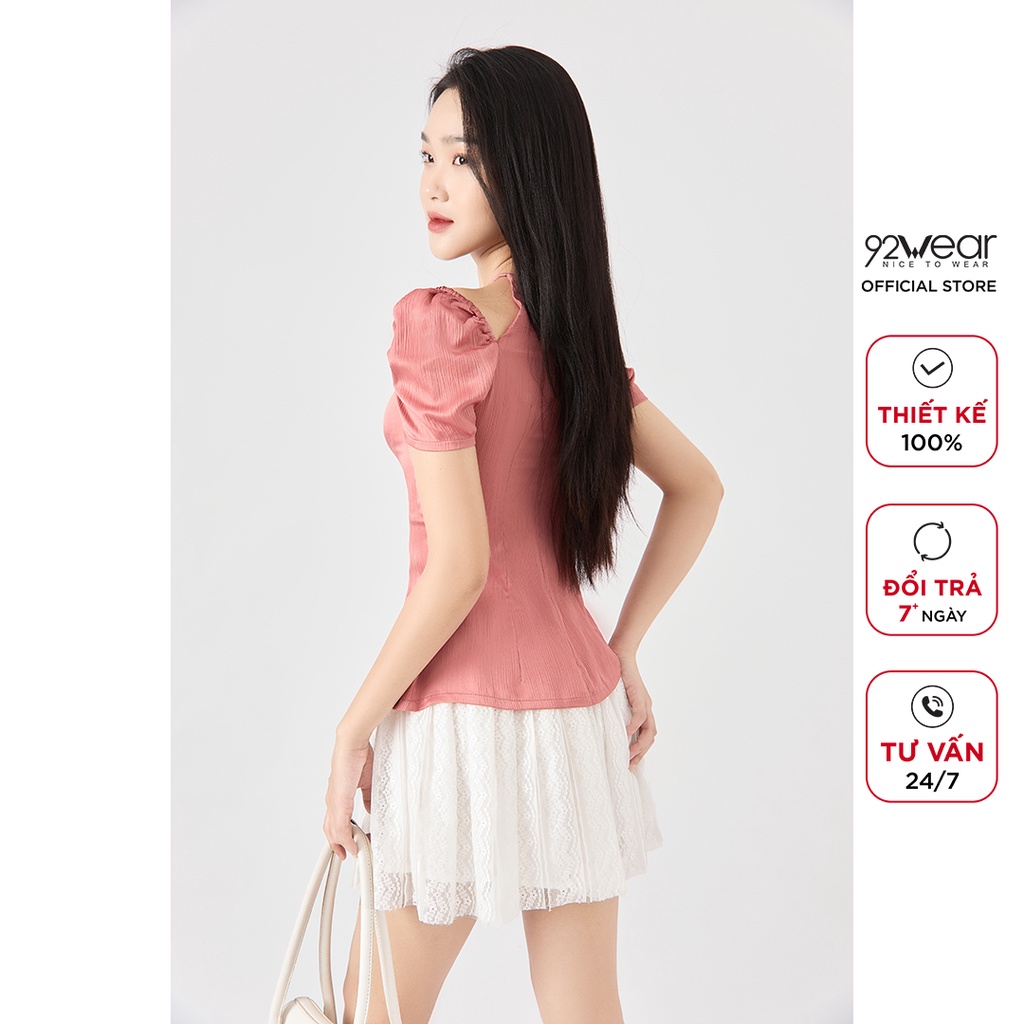 Giới thiệu Áo sơ mi nữ ngắn tay cổ yếm 92WEAR, thiết kế tiểu thư nhẹ nhàng, chất liệu lụa gân cao cấp ASA2030