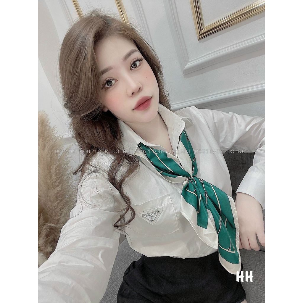 Giới thiệu Áo sơ mi nữ Para kèm khăn quàng cổ xanh áo sơ mi dài tay nữ
