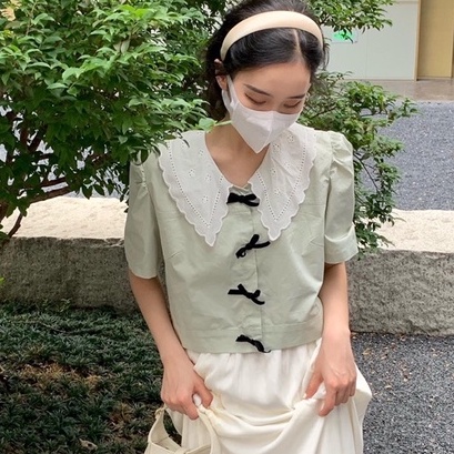 ☕️ Hàng mới về • Áo sơ mi nữ cổ phối ren 2END (Có video & ảnh thật)