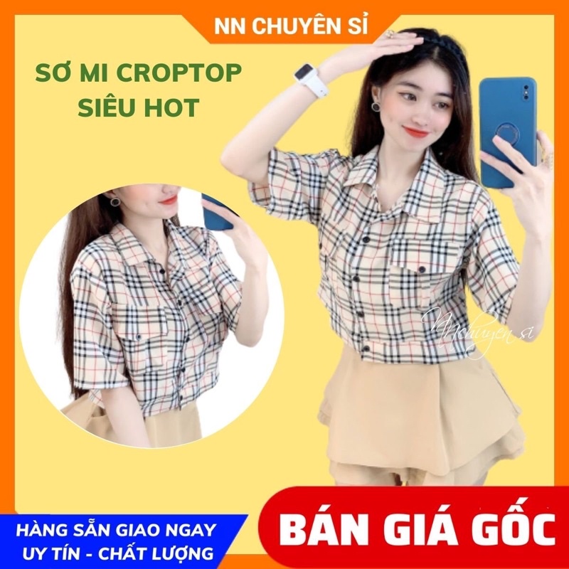 👉 Tên sản phẩm: Áo sơ mi croptop phối sọc cực xinh nè khách ơi
