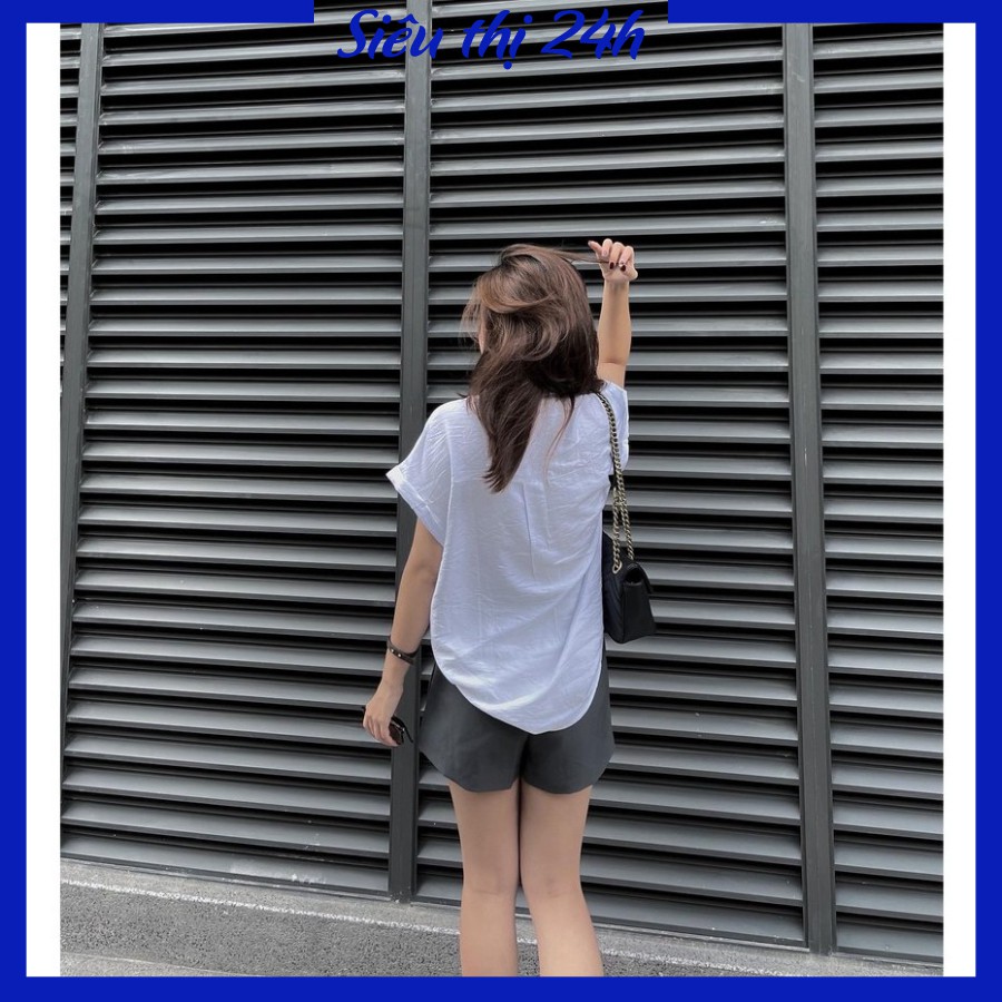Áo sơ mi nữ tay ngắn Hàn Quốc, áo đũi nữ Siêu thị 24 giờ, chất liệu mềm mát, form trẻ trung phá cách.