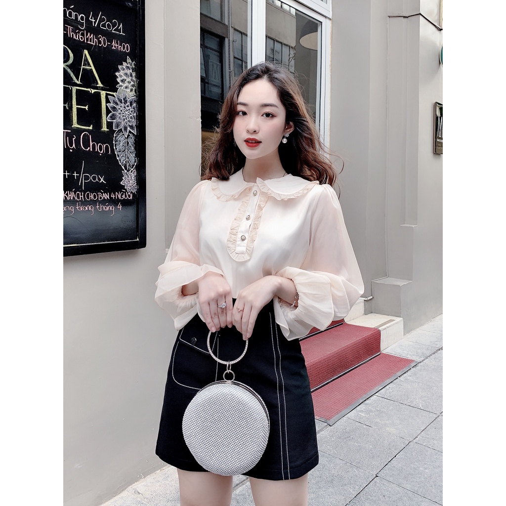 Thông tin sản phẩm: Áo sơ mi nữ tơ cổ bèo 3 cúc cách điệu công sở HILA (Mã SP: A570)