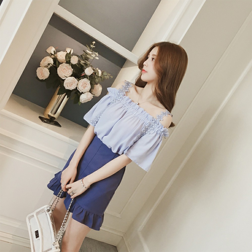 Thời Trang Nữ > Áo > Áo sơ mi || Áo sơ mi nữ trễ vai 2 dây cao cấp mới thời trang Quảng Châu - RiBi Shop