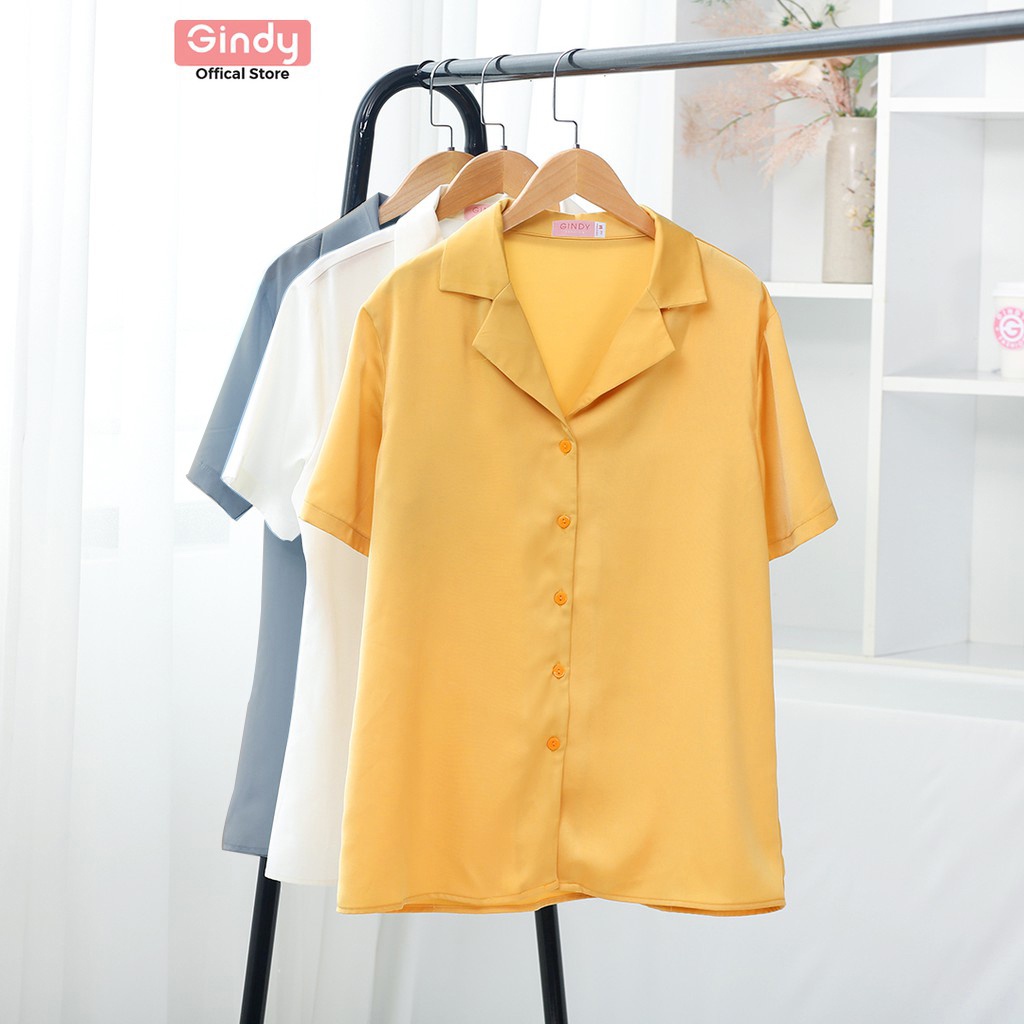 Giới thiệu Áo sơ mi nữ trơn GINDY form rộng tay ngắn cổ bẻ vải lụa nhật dáng suông nhiều màu sơmi kiểu Hàn Quốc A5145