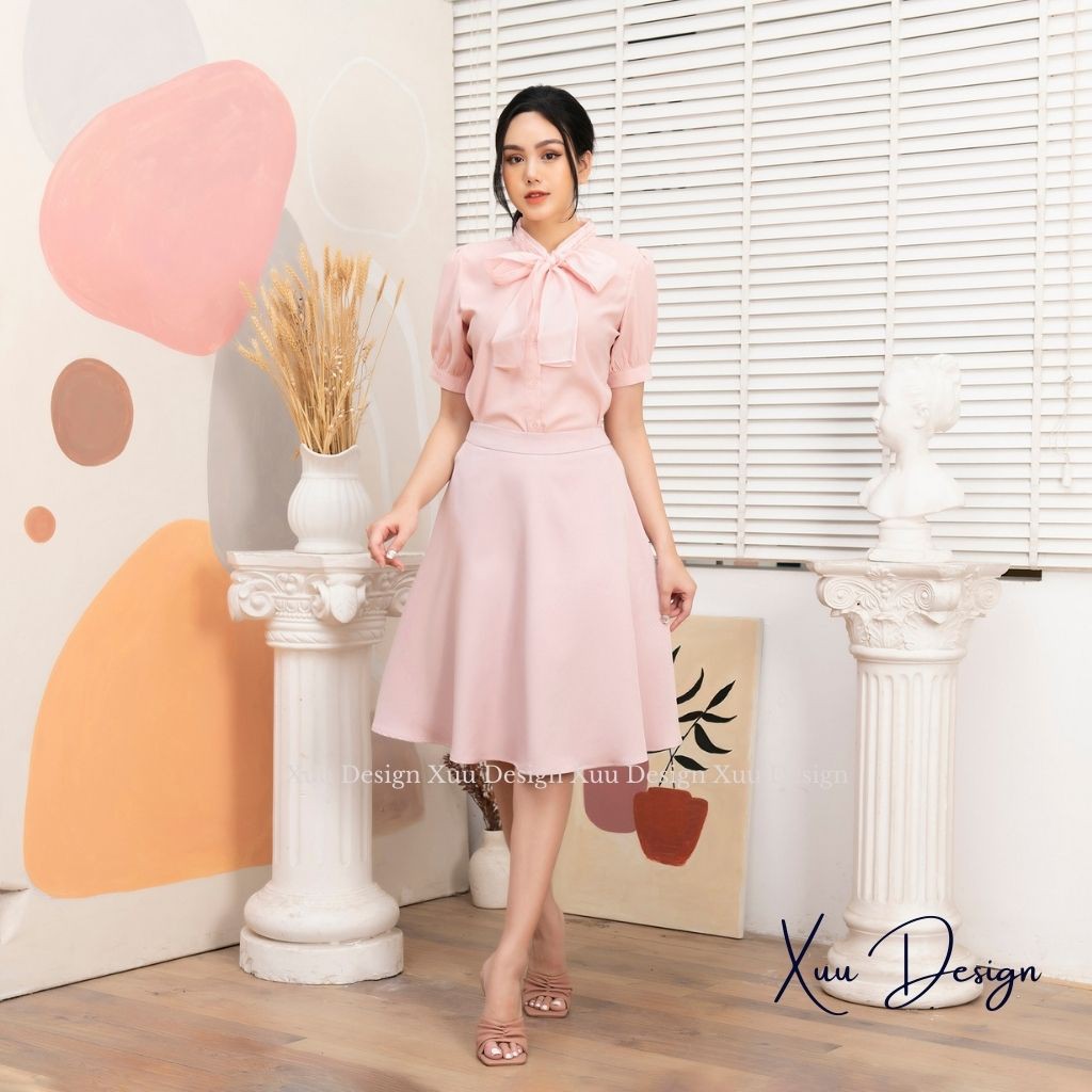 Giới thiệu Áo Sơ Mi Nữ Xuu Design, Áo kiểu nữ cộc tay phối nơ chất vải đẹp SP01 Hồng