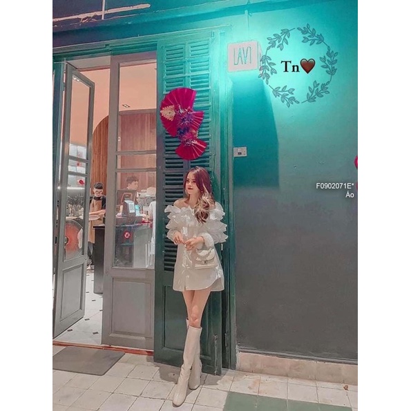 Thời Trang Nữ > Áo > Áo sơ mi || Áo sơ mi phối bèo trễ vai