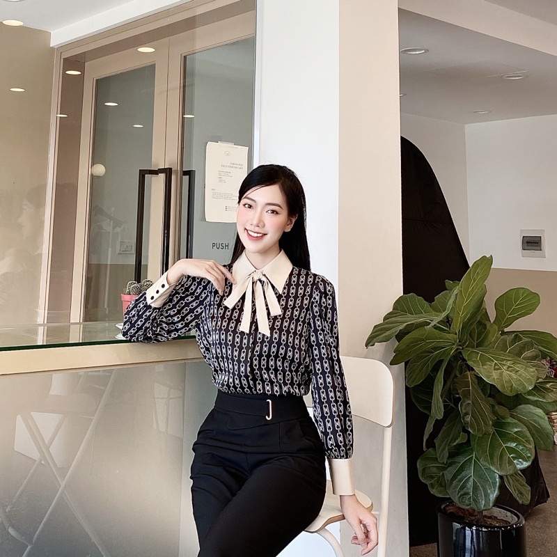 Giới thiệu Áo sơ mi phối họa tiết cổ đức công sở lụa mềm A301