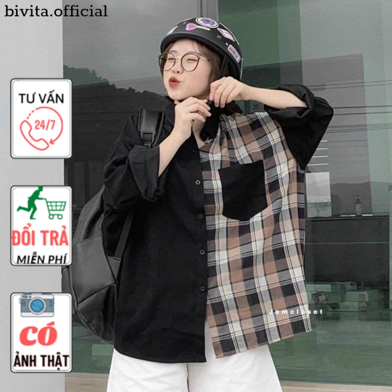 áo sơ mi phối kẻ sịn sò chất thô