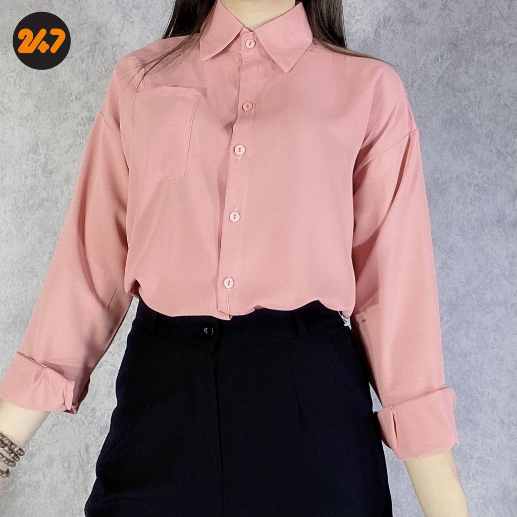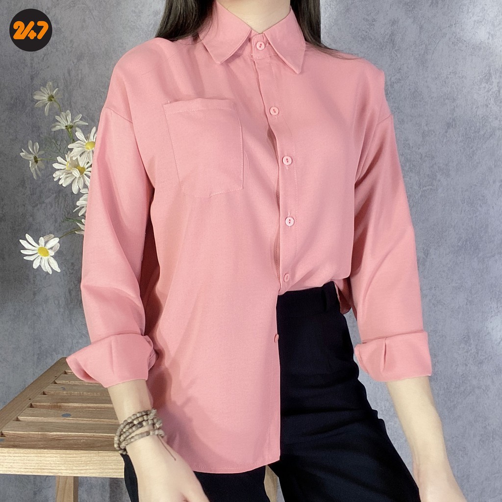 Áo sơ mi phong cách ulzzang màu hồng cute kèm video ảnh thật Somituinguc86