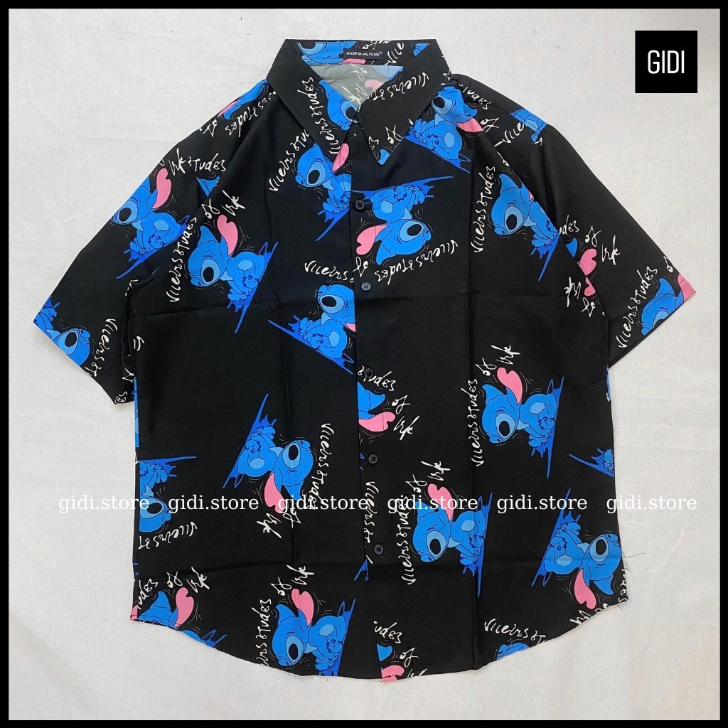 Giới thiệu Áo sơ mi Stitch tay lỡ in họa tiết vải lụa nam nữ Unisex tay lỡ, form rộng, thoáng mát, thấm hút, không nhăn