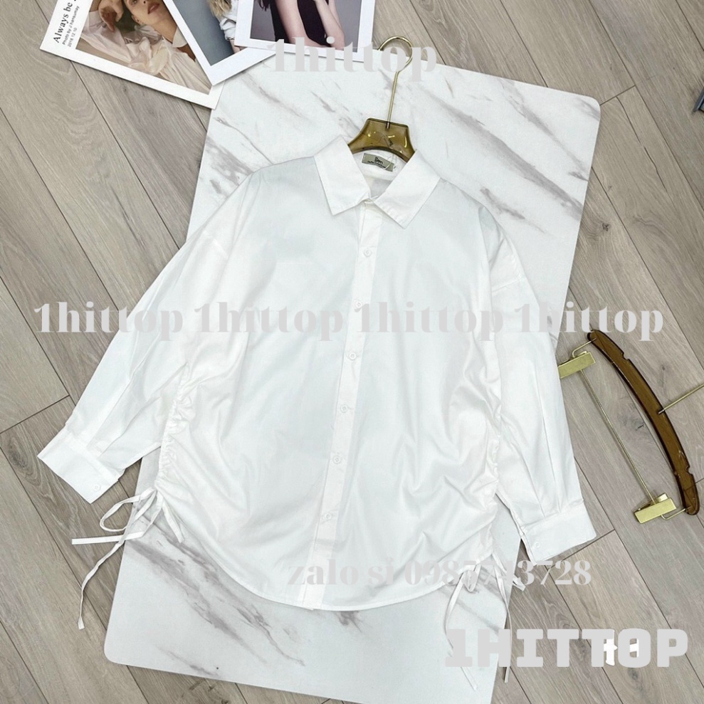 Giới thiệu áo sơ mi tay bồng rút eo 2 màu trắng hồng HA00055 1hittop