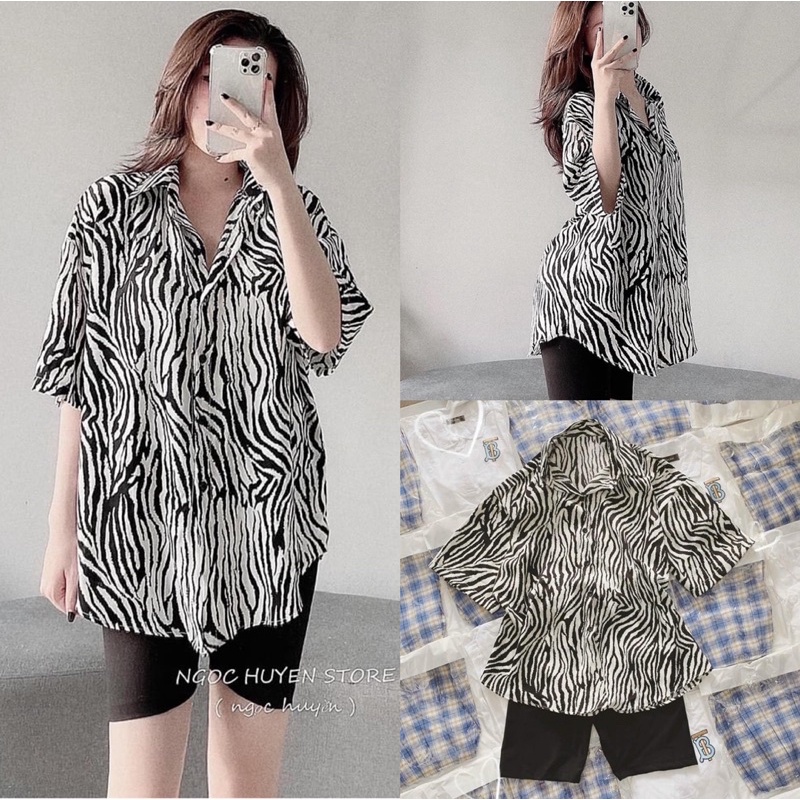 Thời Trang Nữ > Áo > Áo sơ mi || áo sơ mi tay lỡ vằn - quần ngố ôm - carotshop - freesize dưới 57kg