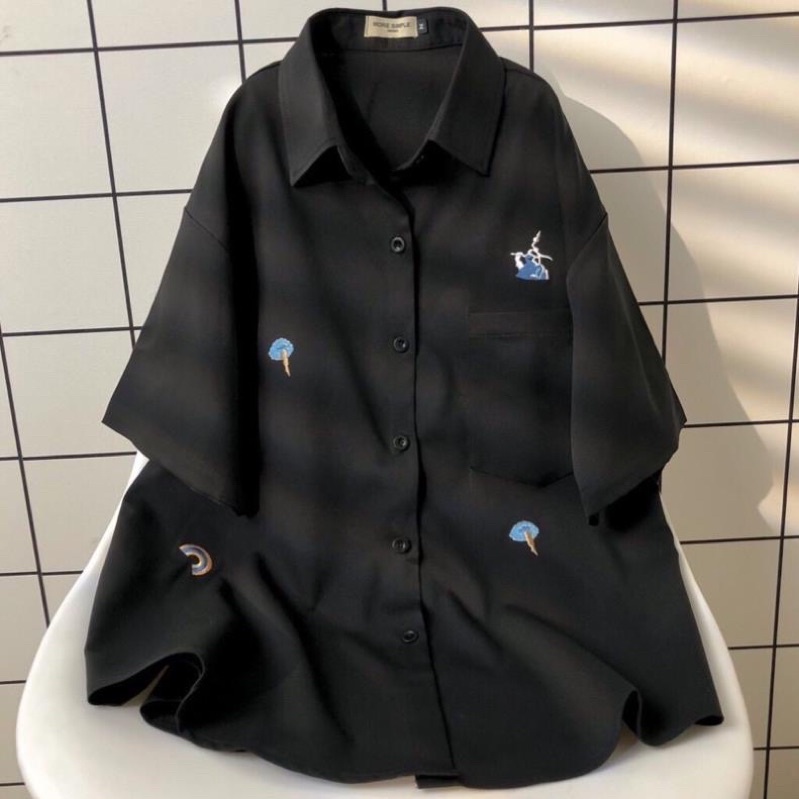 Áo Sơ Mi Thêu LOGO 4 Hình Cộc Tay 2 Màu Đen, Trắng Basic- Áo Kiểu Cổ Đức Ulzzang Unisex Hot Hit sẵn kho SLL tại Shop nhé. Freesize <60kg đổ về OK ah